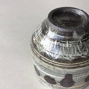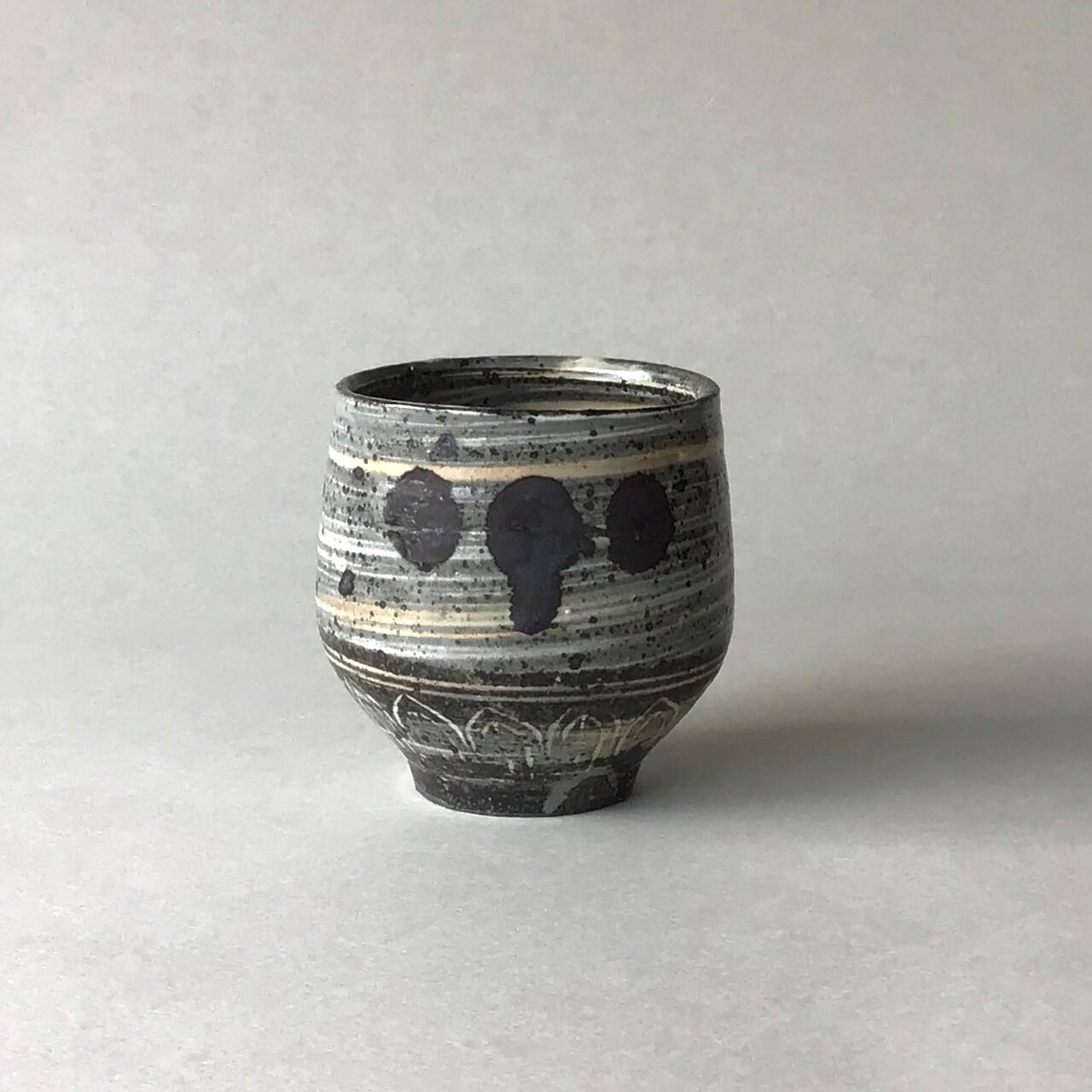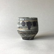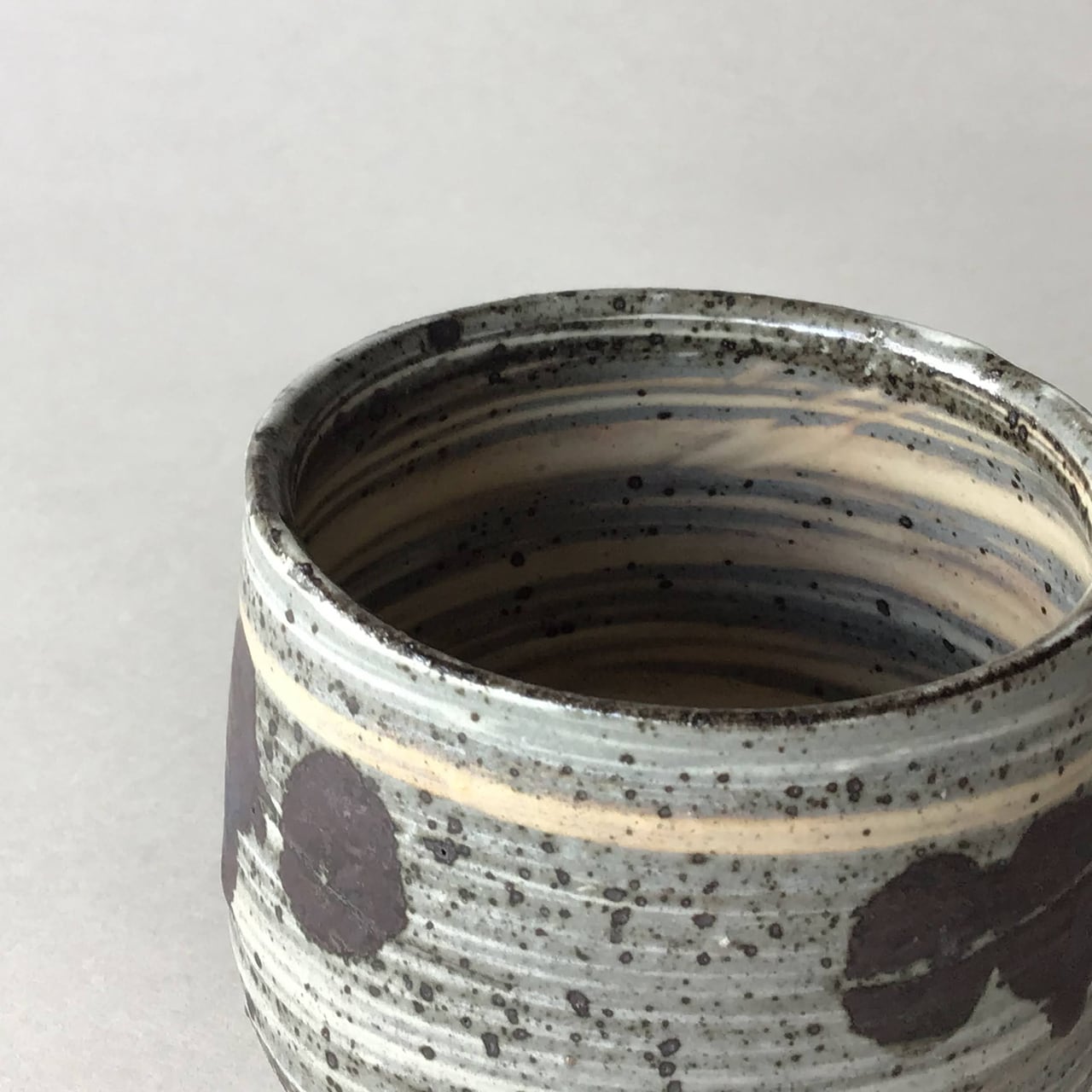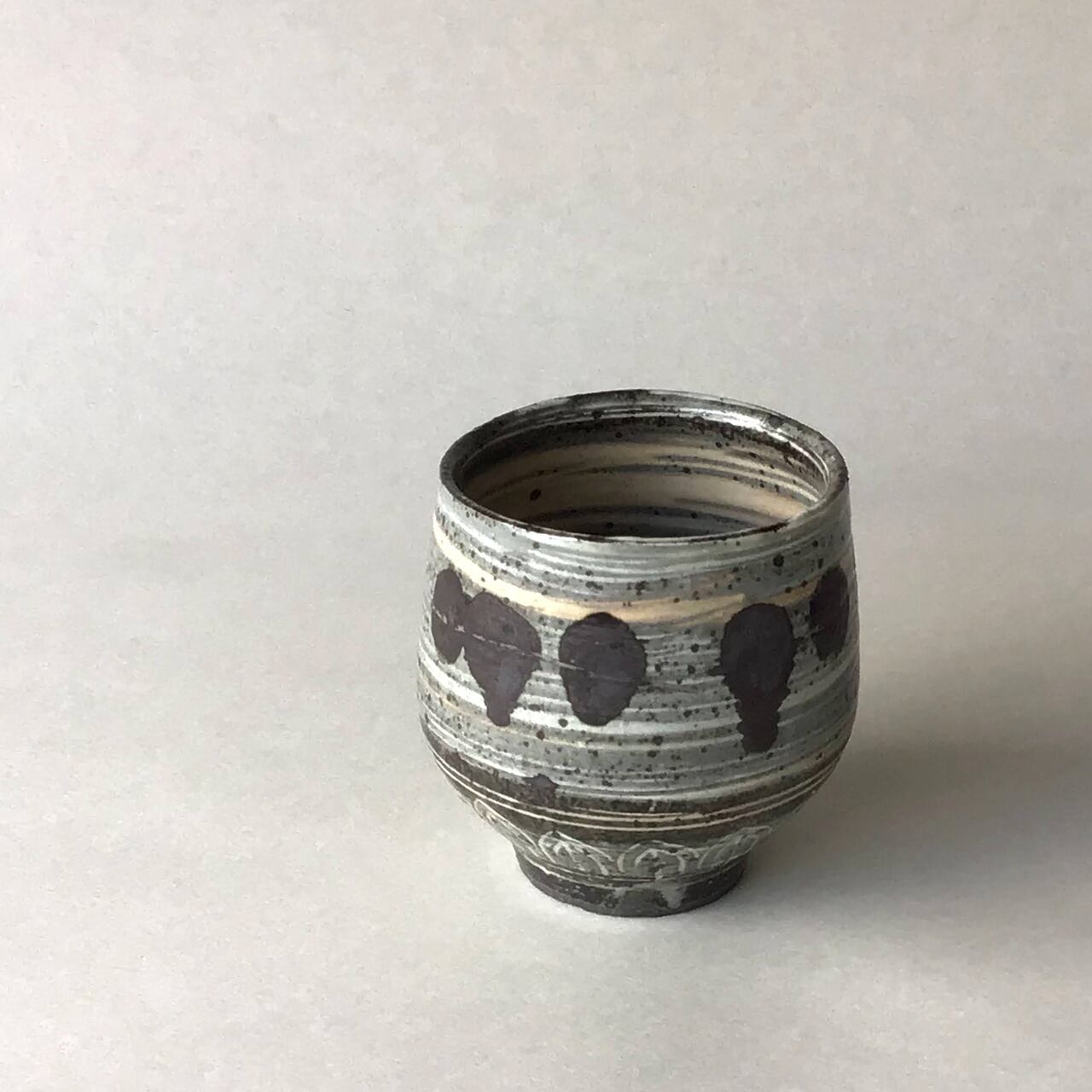 ほっこりとした形、朴訥とした愛らしく力強い絵、刷毛目、三島、全てがいいバランスで入っている大変魅力的な湯呑です。
