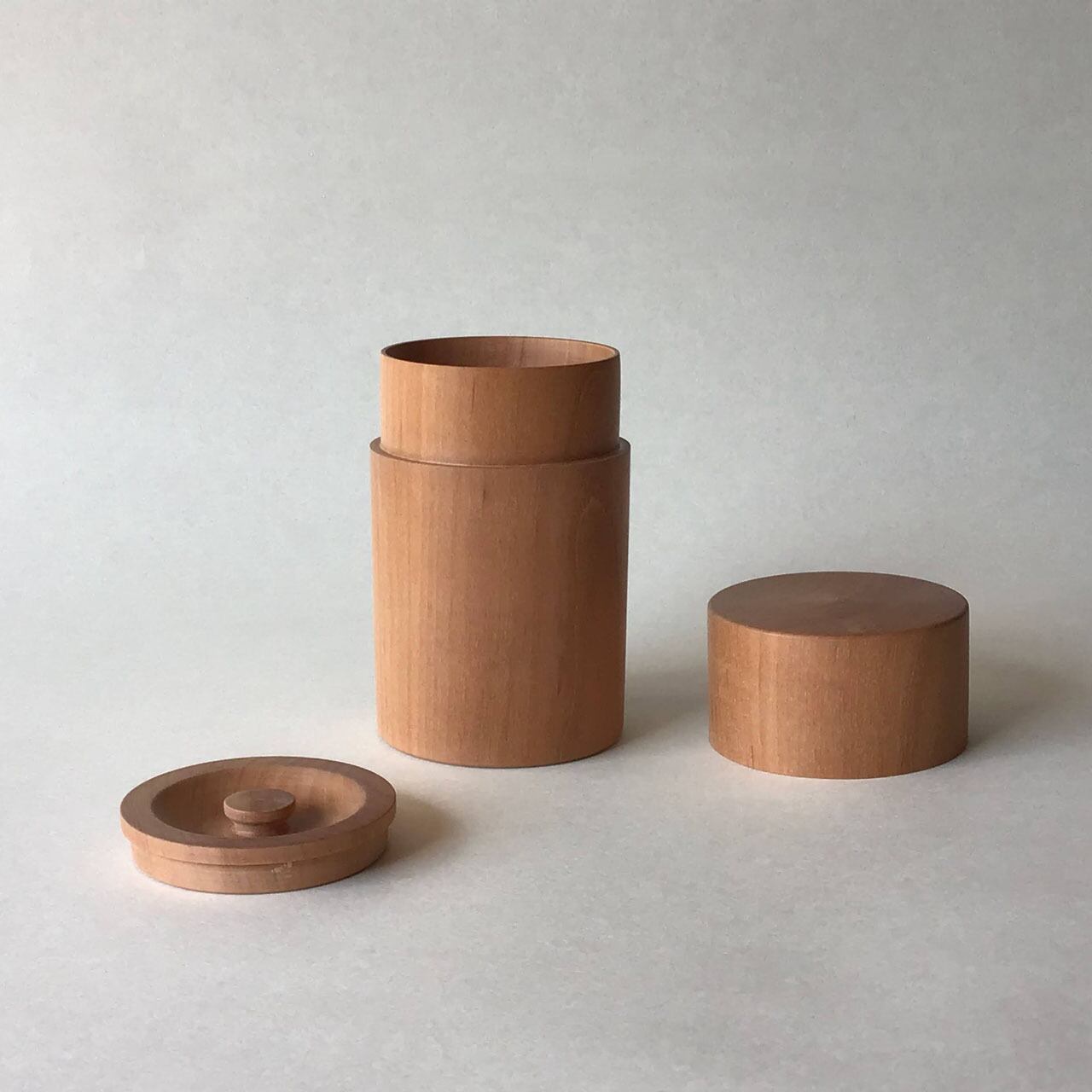 島根県出雲市 森山ろくろ工作所のご主人が挽いた茶筒です。
