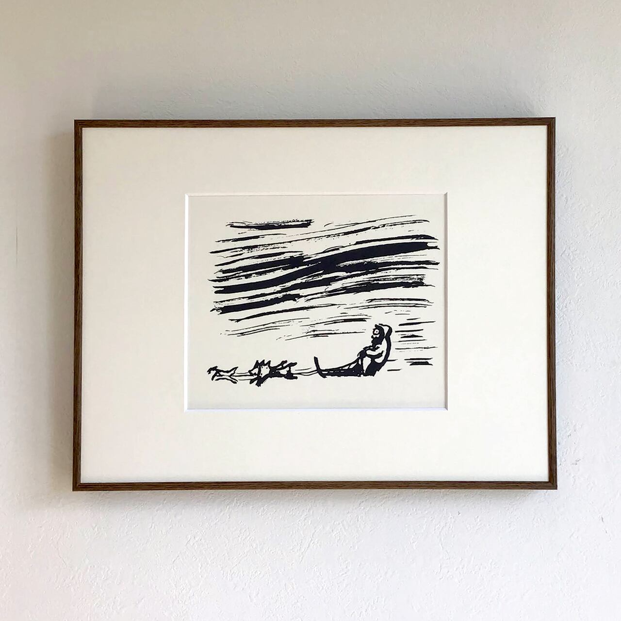 かつてギャラリー杜間道で個展を開催したことがあり、それがご縁でいただいた作品です。児童書で描く絵とは違った独特のユーモアと描写力が素晴らしいです。シンプルな絵は楽しく、どんな場所にも合いやすく飾りやすいのではないでしょうか。