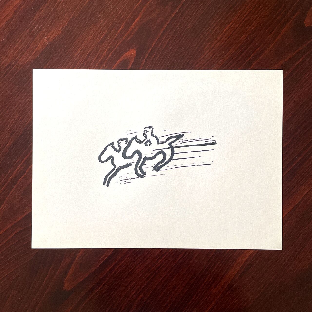 かつてギャラリー杜間道で個展を開催したことがあり、それがご縁でいただいた作品です。児童書で描く絵とは違った独特のユーモアと描写力が素晴らしいです。シンプルな絵は楽しく、どんな場所にも合いやすく飾りやすいのではないでしょうか。